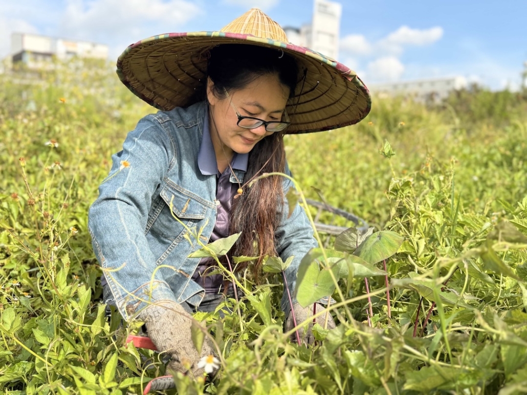 這樣的多樣性不僅提升田間的生物多樣性,也創造自然共融的生態效益。她發現,由於動物可選擇的食物更多,葉菜類反而較不受鳥害;不同作物吸引不同昆蟲,也吸引前來捕食的鳥類或其他生物,使病蟲害的管理變得更輕鬆。「很多事是人想太多,大自然其實會幫你平衡。」她一邊在綠蔭下採收,一邊分享她的觀察與體悟。