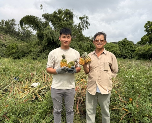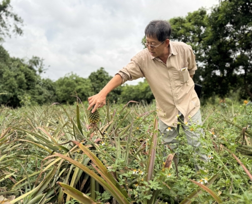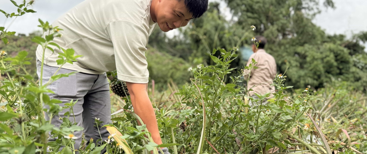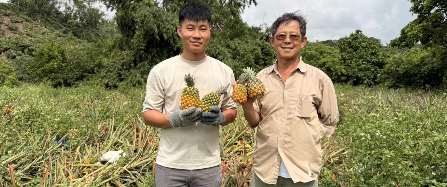 「從小我就在伯父的鳳梨田裡跑。」巴宏倫是高雄大樹的青農,也是「綠冠有機鳳梨農場」的傳承者。這座農場由他的伯父巴錦楙在2008年返鄉創立,開始種植有機鳳梨。宏倫在耳濡目染下,早早就確立了從農志向,高中就讀旗山農工,之後考進屏東科技大學科技農業系,系統性的學習農業觀念與技術。畢業後,他開始參與農場的日常與田間工作,累積實務經驗,逐步深入農場經營的各個面向,如今已經邁入第五年。
