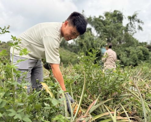 有機鳳梨的種植不易,宏倫坦言:目前仍在學習如何更好地管理田區與人力配置,尤其是控制鳳梨的生長尺寸,以提升整體產量與穩定度。而他也勇於嘗試,例如種植二年生鳳梨,期望減少土地翻耕頻率;溝底鋪設近期新推出的紙膜技術,希望能減少人力割除草地的成本,同時取代一般抑草蓆的塑膠布,來降低環境的負擔。