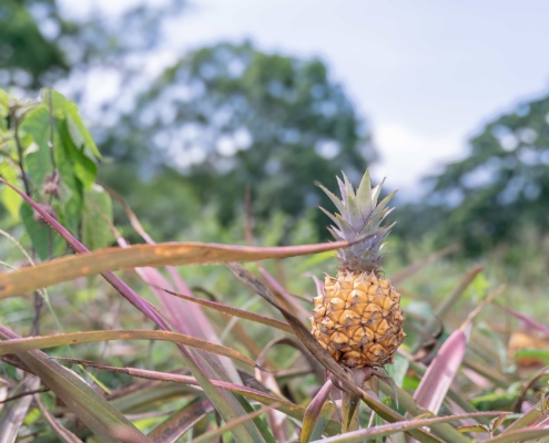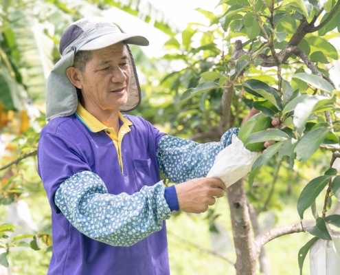 剛開始種檸檬,看起來一切順利,直到第四年,天牛入侵。他記得那一年心血全毀,150棵檸檬樹全部死亡;甜桔也沒能倖免,100棵也遭殃。從那次慘痛經驗後,他不再選擇容易遭蟲害的品項,改種有機鳳梨、百香果、香蕉與洛神等病蟲害較低的作物,穩健地重新出發。